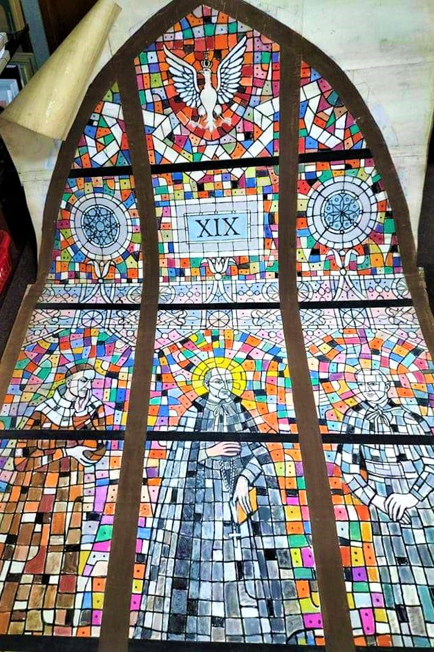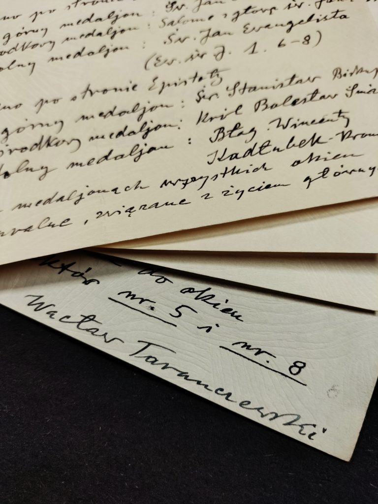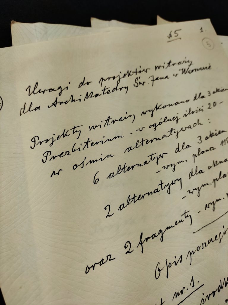 Magazyny archiwalne stale zaskakują – podczas prac porządkowych natknęliśmy się na tajemniczy, ciężki rulon. Po jego ostrożnym rozwinięciu okazało się, że jest to projekt witraża do okna w katedrze św. Jana, wykonany najprawdopodobniej w skali 1:2.